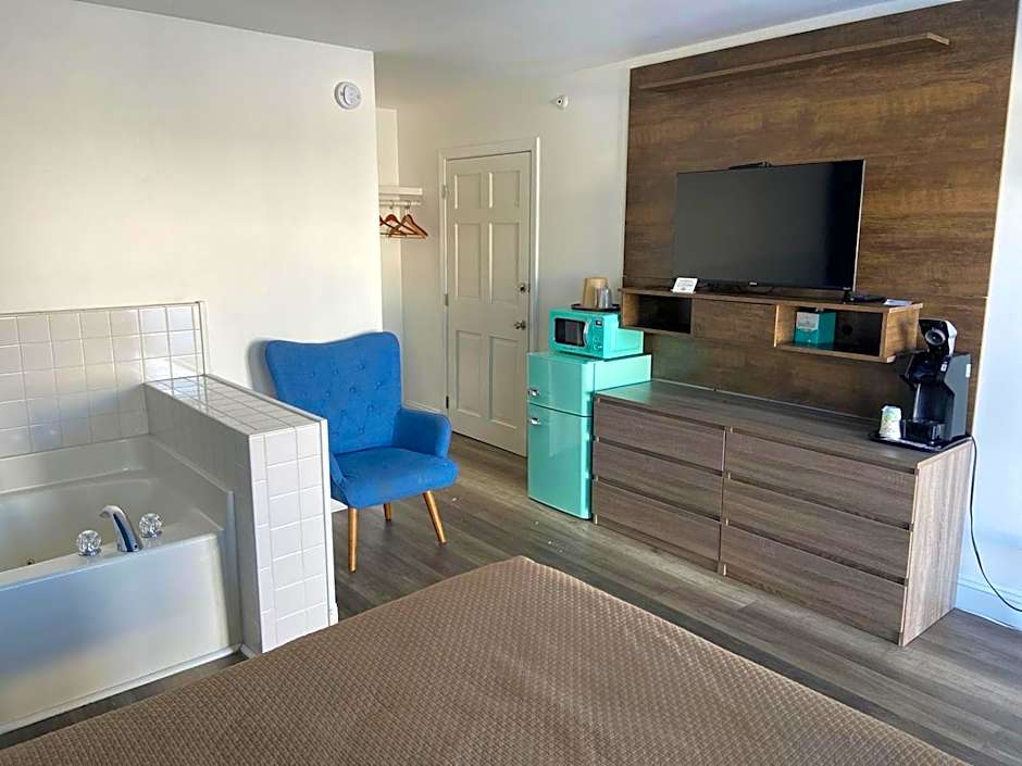 The hot tub is a top feature of this suite. This suite comes with 1 living room, 1 separate bedroom and 1 bathroom with a bath or a shower and free toiletries. This suite features a tea and coffee maker, a TV with cable channels and pool views. The unit has 2 beds.